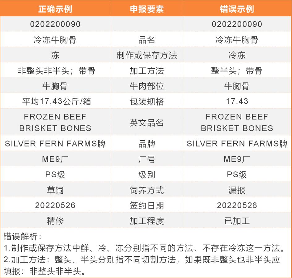 進口牛肉的申報要素包括以下內容:
